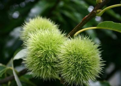 Если говорить о происхождении, то каштан – чисто европейская культура. Дерево может выдерживать морозы до -30°C и плодоносить много лет. Несмотря на неприхотливость, каштан считается теплолюбивым растением, т.к. гораздо лучше чувствует себя в мягком климате, но при этом требует выраженной смены сезонов для формирования здоровых плодов. Его зубчатые листья узкие и довольно длинные. В мае-июне наступает период цветения, когда крона покрывается нежно-жёлтыми соцветиями необычной пирамидальной формы, из которых впоследствии образуются знаменитые каштаны. Блестящие коричневые плоды диаметром 3-4 см покрыты жёсткой, очень колючей оболочкой, которая по мере созревания коричневеет и приоткрывается, являя миру 1-3 ореха. Плоды созревают в октябре, поэтому именно во второй половине осени по всей Италии прокатывается волна «каштановых» фестивалей.